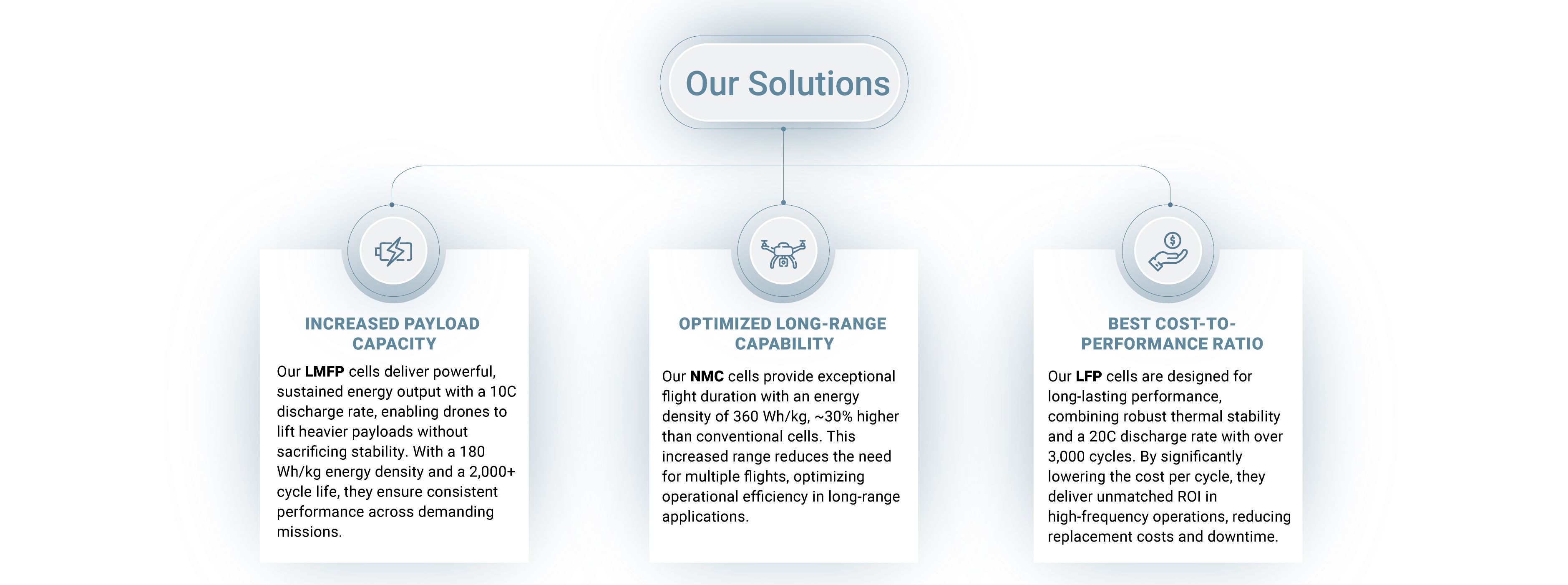 Compact, lightweight batteries that deliver both high energy and high-power output, without compromising on cycle life or safety, can significantly enhance drone performance.